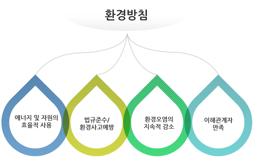 당사는 환경방침의 달성을 위하여 KS I ISO 14001의 요구사항에 적합한 환경경영시스템을 수립하여 이를 실행하고 유지하며 지속적으로 개선하고 있습니다. 해당 부서장은 환경방침의 실현을 위한 환경목표 및 세부목표를 수립하고 이를 달성하기 위한 환경경영추진계획을 수립하여 이를 성실히 실행하여야 하며 당사의 전임직원은 환경방침 및 적극 동참하고 있습니다.