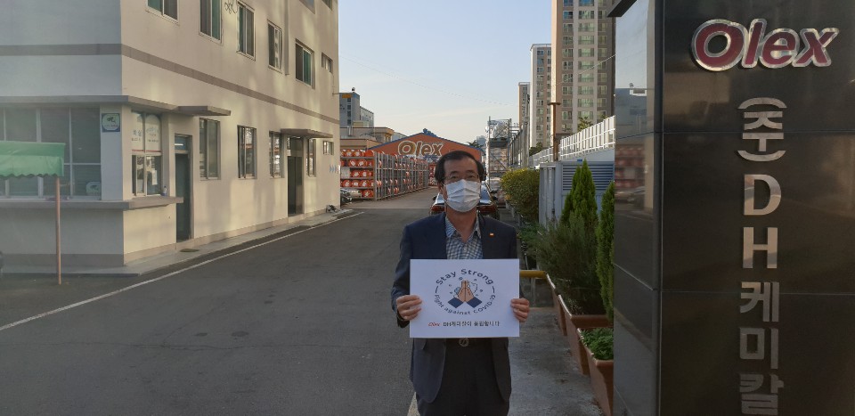 (주)DH케미칼 최강?대표이사는 Stay Strong (스테이 스트롱) 캠페인을 이어갈 다음 주자로 오성켐텍 이규철 대표, 세명에스터 이하연 대표,(주)코렉스산업 지승원 부사장께 동참을 부탁하였습니다.