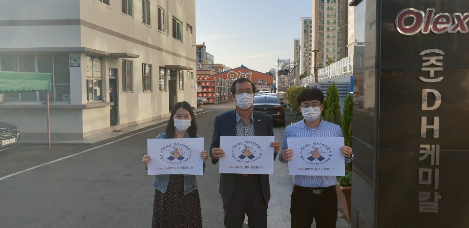 (주)DH케미칼 최강 대표이사는 직원들과 함께 Stay Strong (스테이 스트롱) 캠페인 슬로건과?'코텍이 함께 응원합니다'라는 메시지가 담긴